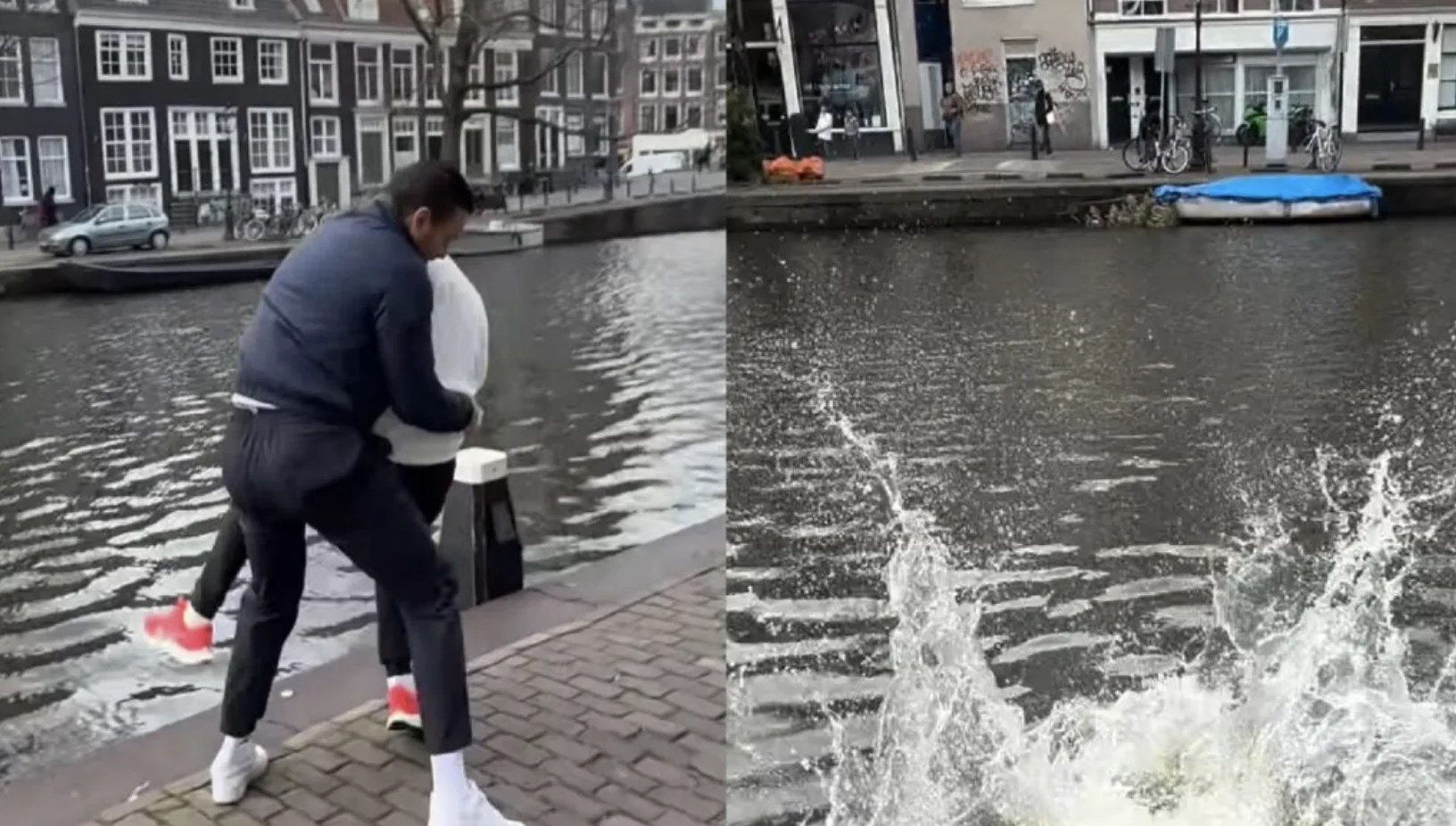 Met één simpele duw in de Amsterdamse gracht werd de video afgesloten op een manier die veel kijkers niet zagen aankomen — en precies dat maakte de stunt zo geslaagd.
