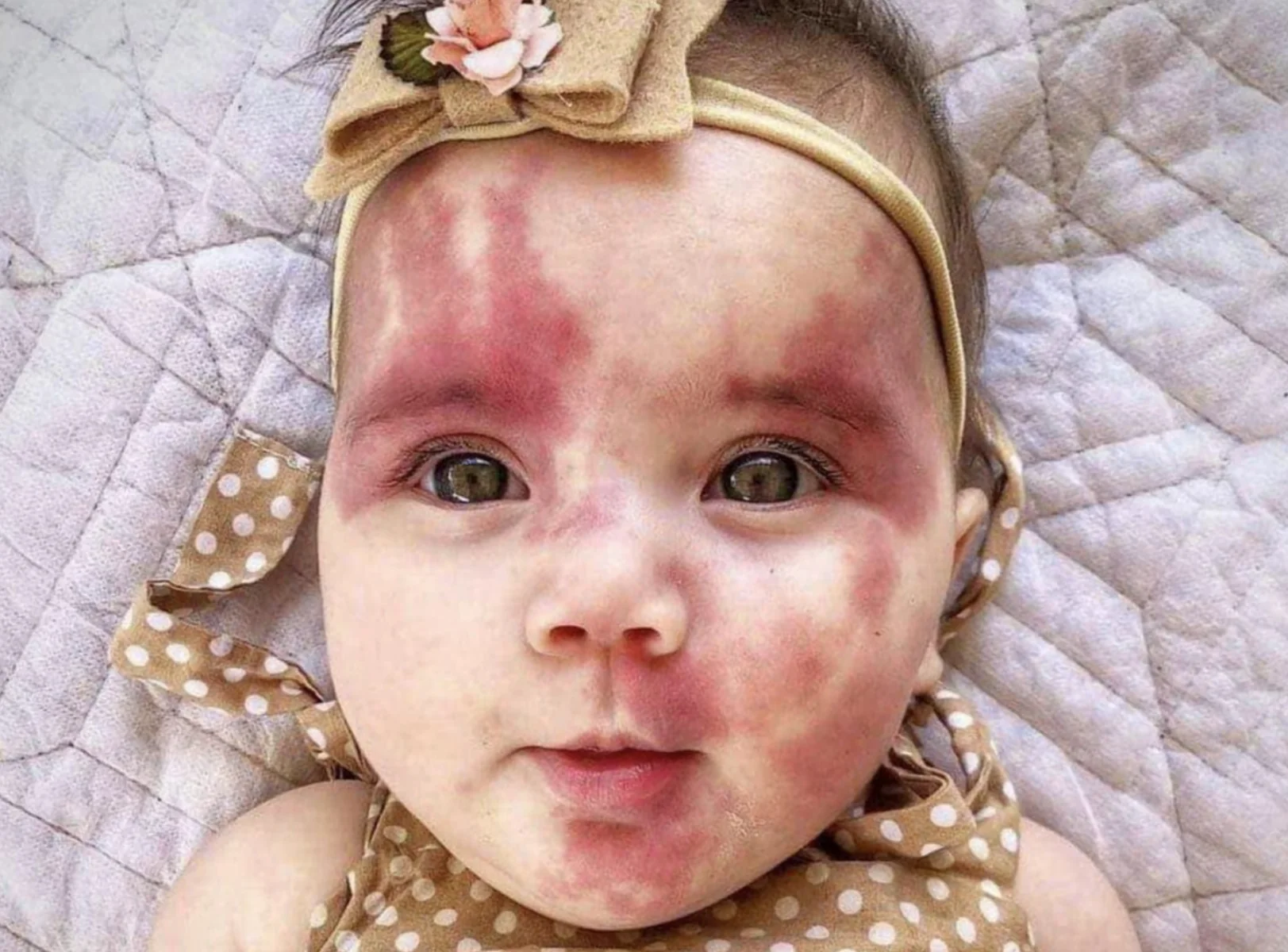 Vanaf het eerste moment viel het op dat de baby een opvallende markering in haar gezicht had. Wat medisch gezien vaak een aangeboren huidafwijking is, zorgde voor verwarring bij mensen die het niet kenden.