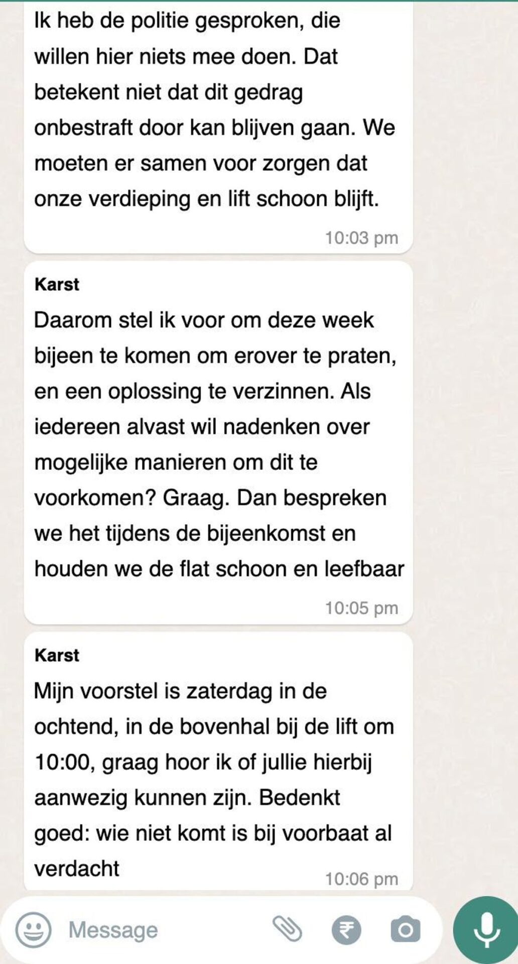 Na een paar berichten probeerde de klant nog vriendelijk te reageren, door uit te leggen dat de opmerking helemaal niet zo bedoeld was, maar het was te laat. De schoonmaakhulp voelde zich volledig in haar waarde aangetast en kon haar emoties niet meer bedwingen. Het leek erop dat er geen weg meer terug was voor de klant, die nu aan de ontvangende kant van een eenzijdige ruzie stond.