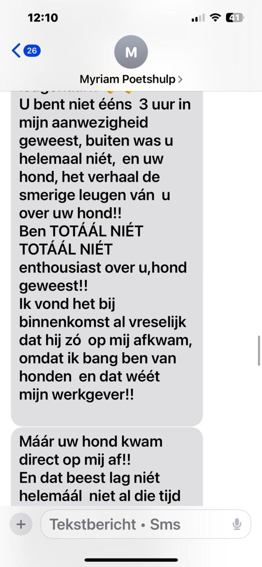 De klant, die aanvankelijk dacht dat de opmerking misschien vriendelijk bedoeld was, werd volledig verrast door de intensiteit van de reacties die volgden. Het was duidelijk dat de schoonmaakhulp enorm gekwetst was door de suggestie dat ze haar werk niet serieus nam. De boze sms-berichten bleven maar komen, elk bericht druppelde verder haar frustraties, en de klant voelde zich steeds meer aangevallen.