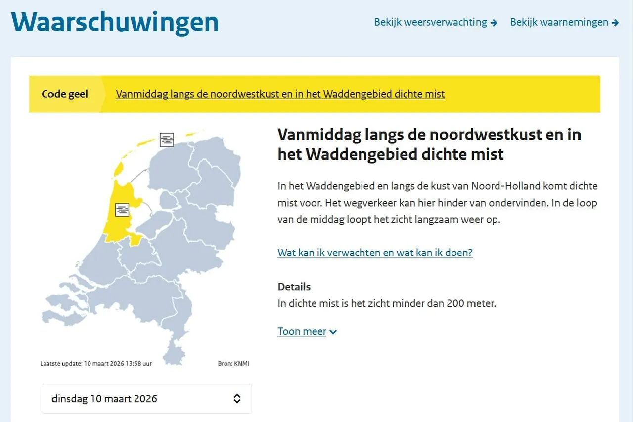 Vanwege de slechte zichtomstandigheden gaf het KNMI een weerwaarschuwing af.